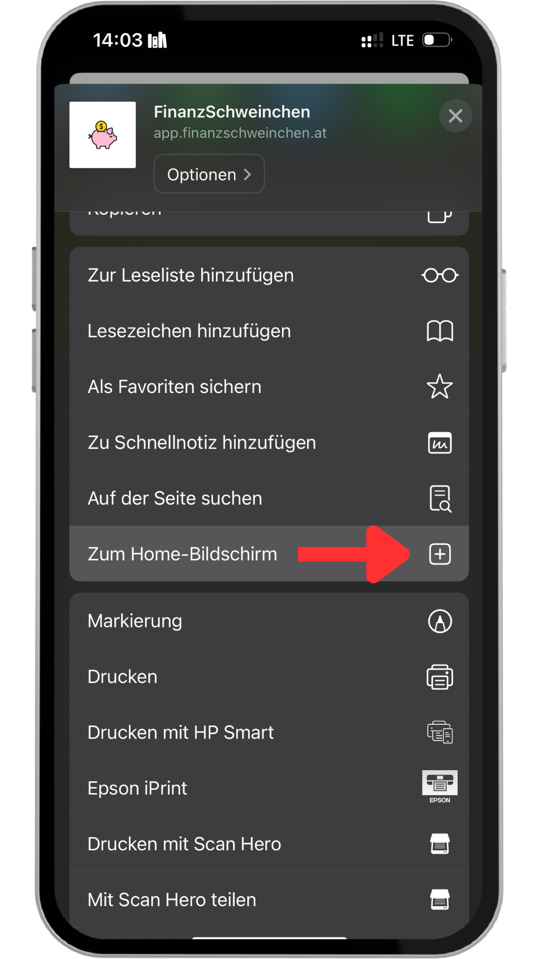 2. Runterscrollen und zum Home-Bildschrim hinzufügen